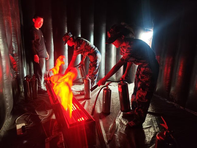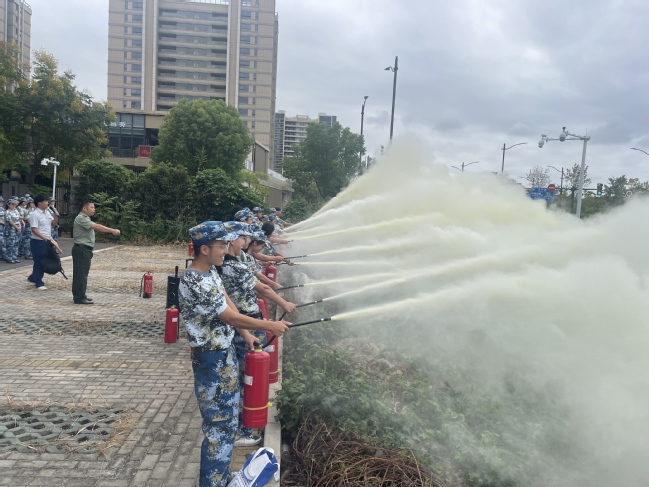 在灭火体验区,同学们在教官细致的指导下,迅速掌握操作要领,成功使用灭火器扑灭火源,初步积累了火灾扑救的实际操作经验。