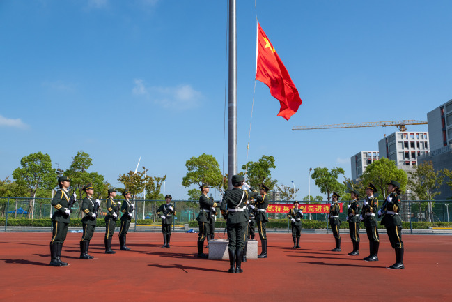 9月28日上午,我校2025级本科新生军训成果汇报暨总结表彰大会在临港校区体育场举行。校党委书记宋来,中国人民解放军94804部队副旅长韩晓钋,校党委副书记、副校长朱克勇,军训师师长刘杰传,军训师政委、校武装部部长金炜,校学工部部长陈姗姗以及各二级学院党委副书记、全体新生辅导员以及承训部队教官出席大会。大会由武装部副部长余南飞主持。